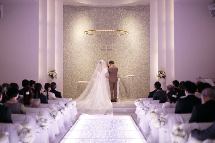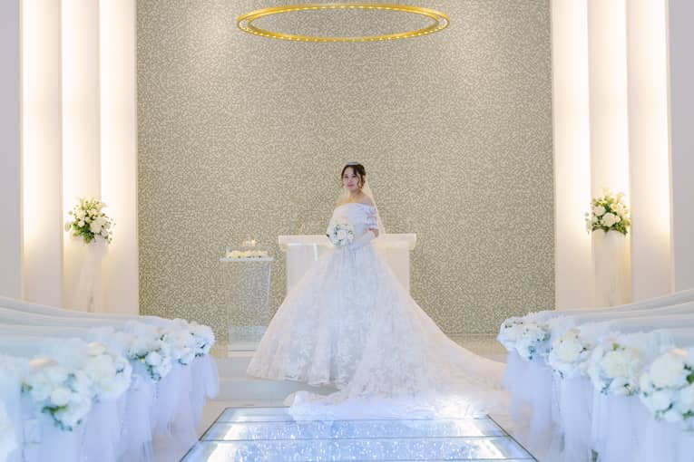 どんな天候でも安心の純白チャペル!輝くバージンロードで感動のワンシーン