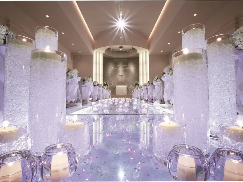 透明感に満ちたバージンロードが美しい輝きを放つ
