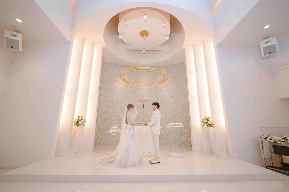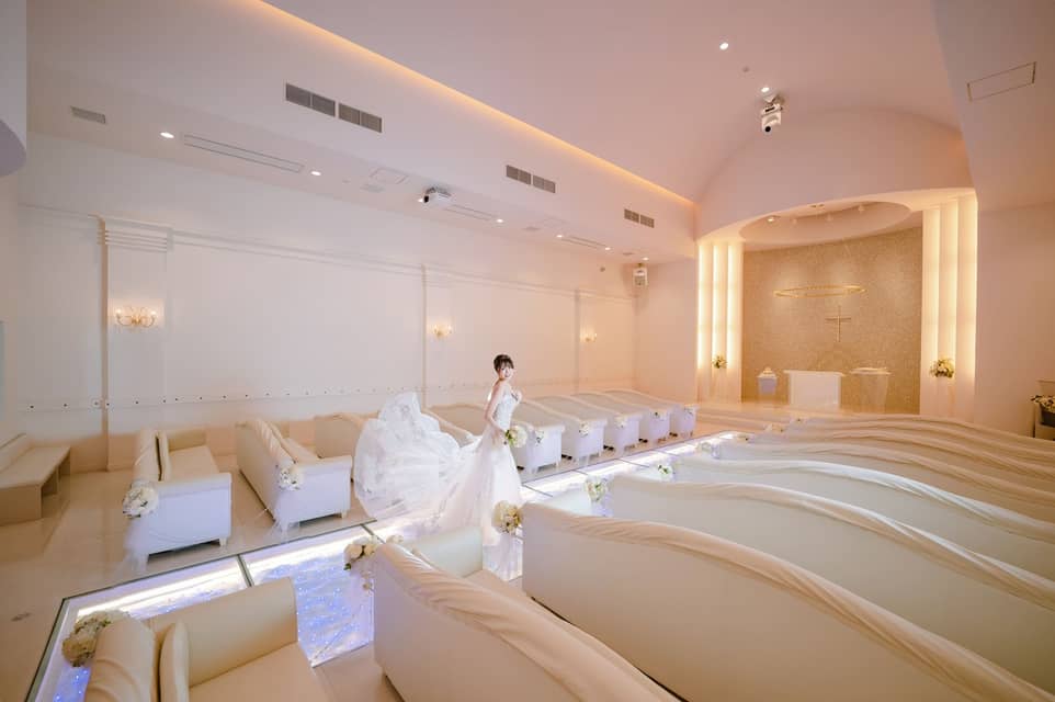 ピュアホワイトの優しさに包まれた独立型チャペルは、